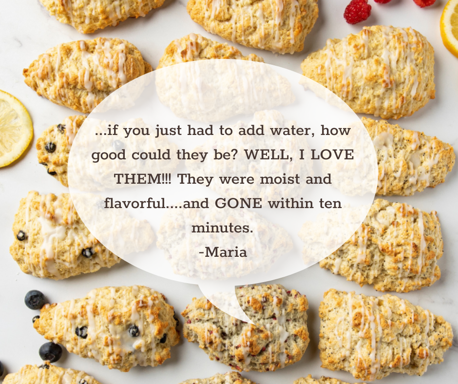 Whether it's our signature cinnamon chip, zesty lemon poppy seed or classic blueberry, our scones are crafted to melt in your mouth with each bite. Made from scratch, never frozen, our mixes create scones that taste like they came straight from the bakery. Your kitchen will fill with the comforting smell of vanilla and spices, evoking memories of Saturday mornings at your favorite coffee shop.